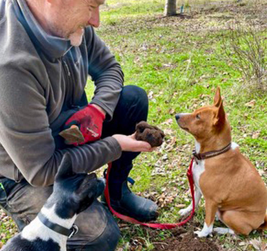 While a city boy, David, refers to himself jokingly as an “accidental” farmer. Perhaps appropriate given his choice of a Basenji, an African hunting dog from the Congo, domesticated in the 1930’s, as his truffle hunting dog.