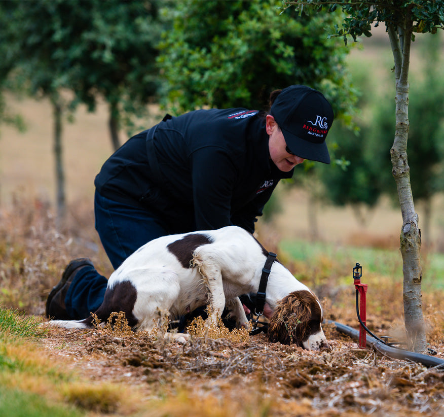 Today, RedGround’s meticulously maintained truffière produces a range of seasonal truffles: summer truffles, Burgundy autumn truffles, spring white Italianstyle truffles, and the highly prized Perigord black winter truffle (Tuber melanosporum). The farm’s truffle dogs, Sarge the Kelpie and Scout the Border Collie, work year-round to uncover these culinary treasures.
